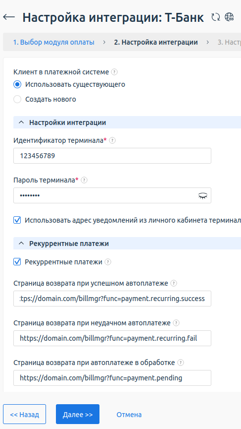 - Настройте параметры работы с плательщиками.