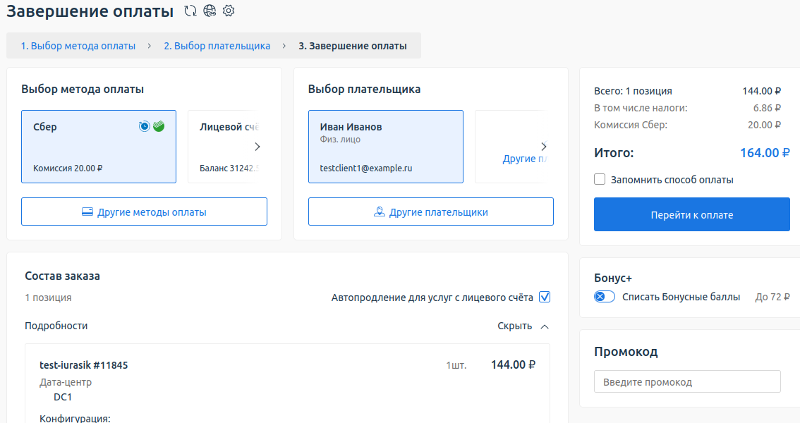 - Выберите существующего плательщика или создайте нового. Укажите информацию о плательщике. В зависимости от выбранного метода оплаты этот шаг можно пропустить.