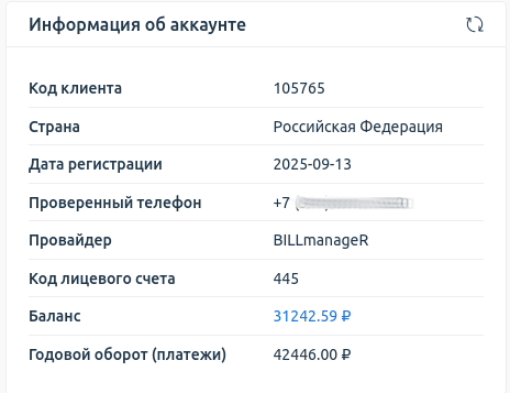 Баланс вашего лицевого счёта отображается на главной странице странице Главная → Информация об аккаунте → Баланс.