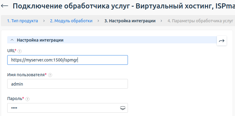 - Модуль обработки — выберите модуль обработки для вашей версии ispmanager.