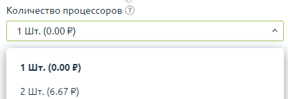 На странице заказа услуги выбор количества ресурса представлен выпадающим списком: