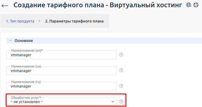 - Создайте необходимый тариф и прикрепите к тарифу ручной обработчик услуг: