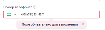 - не проходит проверка номера телефона. После ввода номера отображается ошибка Поле 'Номер телефона' имеет недопустимое значение;