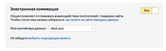 Чтобы включить электронную коммерцию на стороне Яндекс Метрики: