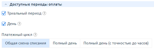 - В разделе Доступные периоды оплаты активируйте опцию День.