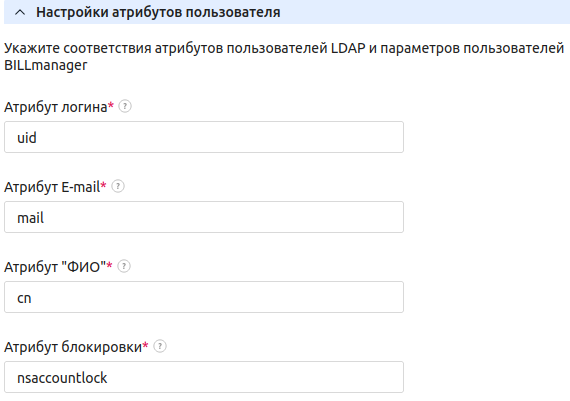 - Атрибут блокировки — имя атрибута на LDAP-сервере, который отвечает за блокировку пользователя.