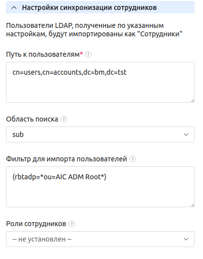 Чтобы импортировать пользователей LDAP как сотрудников, настройте: