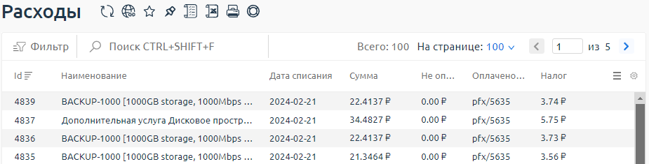Чтобы просмотреть историю расходов, перейдите в раздел Финансы → Расходы.