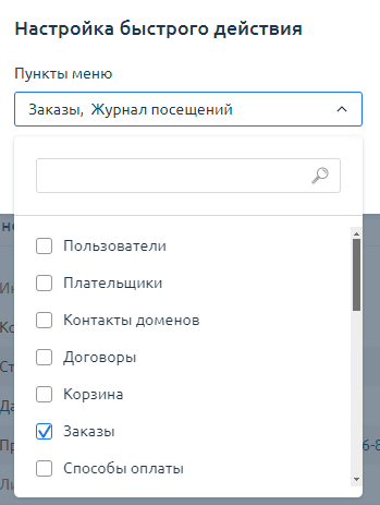 . В открывшемся окне выберите пункты меню для отображения в виджете.