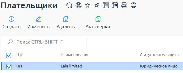 Чтобы создать плательщика, перейдите в Клиент → Плательщики → кнопка Создать: