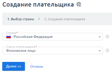 - Выберите Страну плательщика.