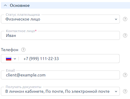 Информация о плательщике содержит почтовый и электронный адрес, телефон, имя контактного лица и другую важную информацию, которая может понадобиться провайдеру при работе с компанией, индивидуальным предпринимателем или частным лицом.