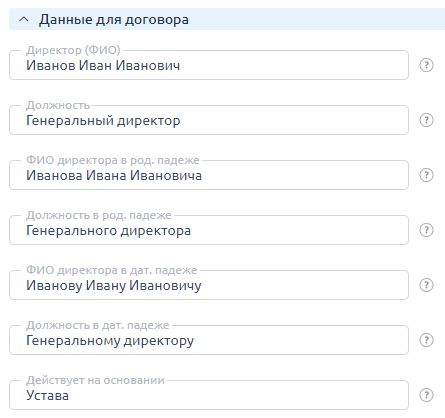 - Наименование — название компании, имя частного лица или индивидуального предпринимателя.