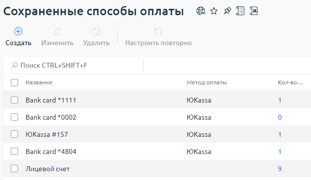 - Перейдите в раздел Клиент → Способы оплаты → кнопка Создать.
