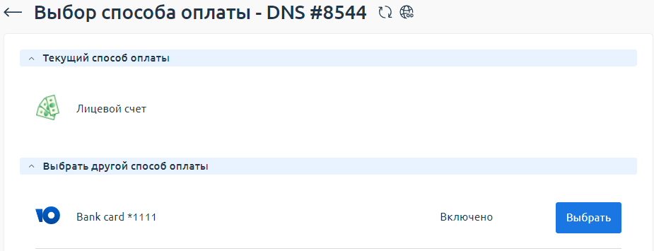 - Нажмите Выбрать для нужного метода оплаты.
