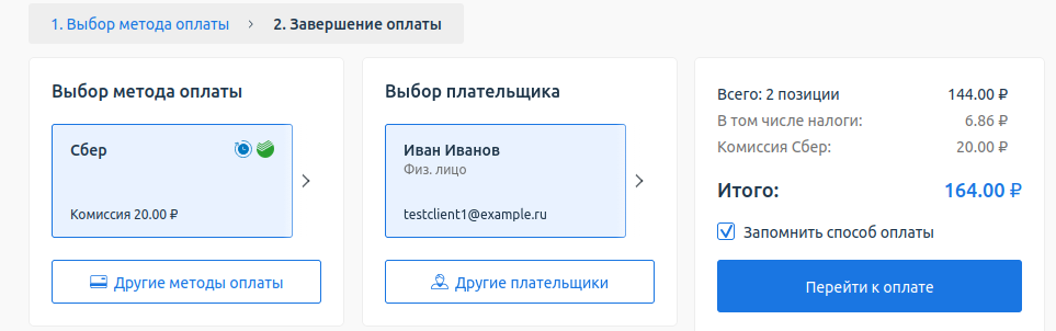 - Выберите плательщика, для которого вы хотите сохранить способ оплаты, или выберите вариант "Создать нового" плательщика.