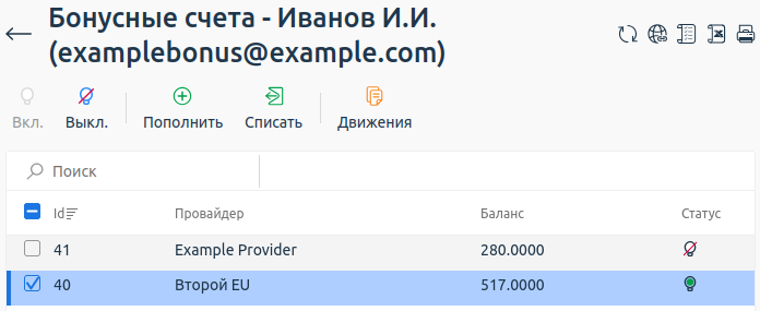 Чтобы активировать бонусную программу в платформе, откройте раздел Провайдер → Провайдеры → выберите провайдера → кнопка Изменить → раздел Настройки бонусной программы → выберите опцию Включить бонусную программу.