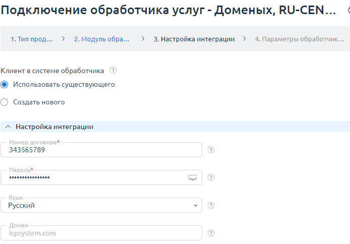 Заполните форму, используя данные существующего клиента в системе обработчика:- Номер договора — номер договора с RU-CENTER.