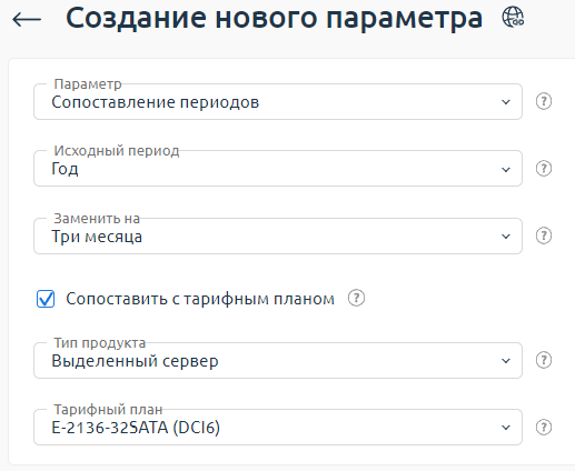 - Отметьте пункт Сопоставить с тарифным планом. Это сопоставление периодов будет работать только при заказе услуг по указанному тарифу.