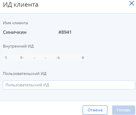 - Идентификатор клиента — укажите идентификатор клиента для доступа к API;