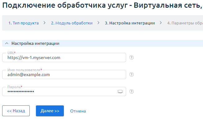 - Модуль обработки — выберите VMmanager 6 IaaS.