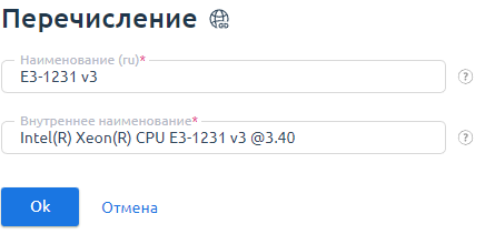 Внутреннее наименование позволяет установить связь между элементом перечисления в Clouden и комплектующими сервера на стороне DCImanager. Внутреннее имя комплектующей строится по определенному формату и зависит от типа ресурса: