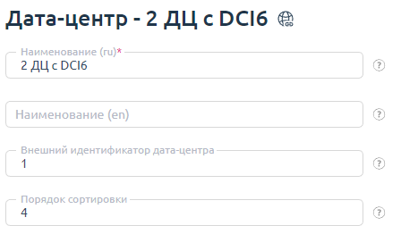- Укажите Наименование дата-центра.