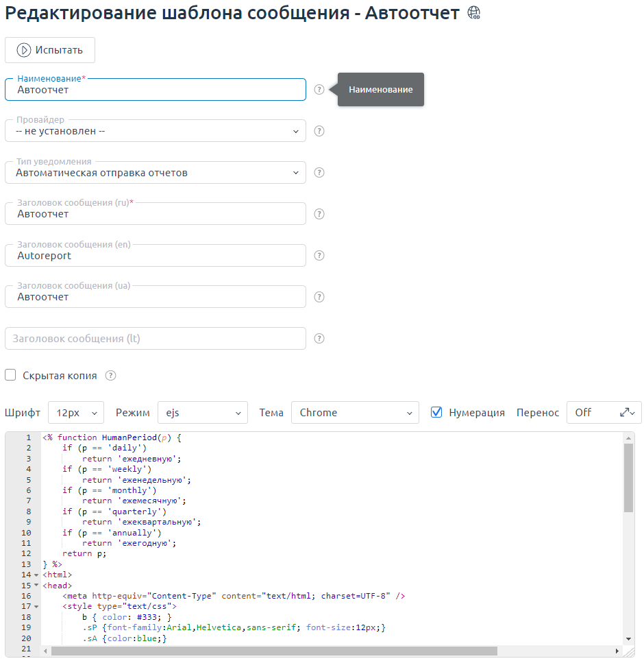 Каждый шаблон можно назначить только одному провайдеру. Если провайдер не выбран, то шаблон сообщения будет использоваться всеми провайдерами, у которых не назначен персональный шаблон.