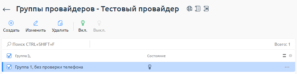 - Перейдите в раздел Провайдер → Провайдеры → выберите провайдера → кнопка Группы.