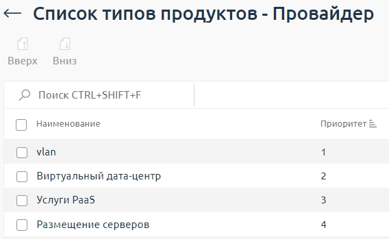 - Выберите тип продукта и с помощью кнопок Вверх и Вниз переместите его в нужное положение.