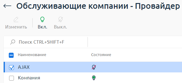 - Перейдите в раздел Провайдер → Провайдеры → выберите провайдера → кнопка Компании.