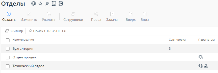 - Сортировка — укажите значение сортировки отдела. Параметр отвечает за порядок отображения отдела в списке выбора при создании задачи. Чем меньше значение, тем выше позиция в списке.