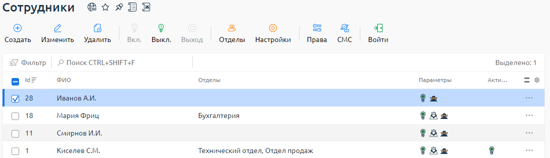 Сотрудник наследует права доступа от отдела. При этом для сотрудника нельзя изменить права, полученные от отдела, но можно установить дополнительные.