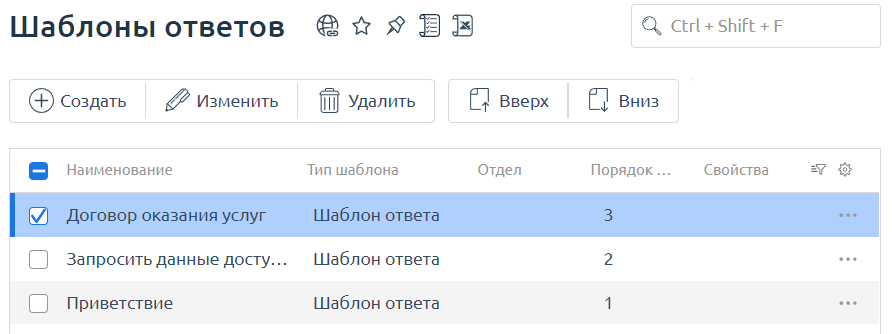 Автоматизировать ответы на часто задаваемые вопросы можно в разделе Поддержка → Шаблоны ответов.