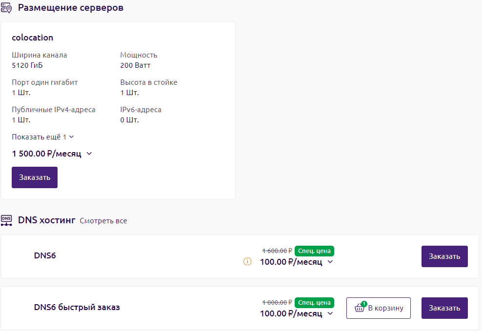 Тип продукта "Домены" может быть отображён только в виде списка.Пример отображения тарифов - Раскрывать описание в заказе — активируйте опцию, чтобы описание тарифа для выбранного типа продукта не сворачивалось на форме заказа.
