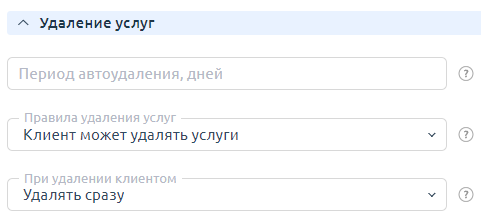 - При удалении клиентом — выберите правило удаления услуг данного типа клиентом: