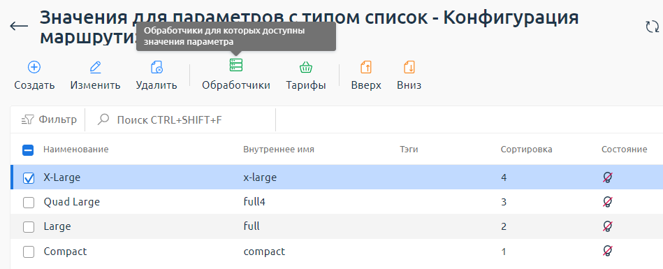 Для загрузки значений биллинговая платформа использует обработчик услуг. При создании нового обработчика услуг все добавленные значения будут активны для него. При обновлении созданного обработчика все новые значения будут неактивны для него и для его тарифов. Для управления активными значениями обработчика перейдите в раздел Продукты → Типы продуктов → Параметры → Значения → Обработчики.