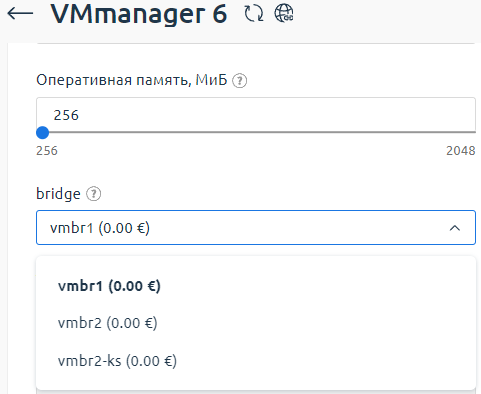 Например, клиент заказывает у провайдера виртуальный сервер. На странице заказа провайдер предлагает клиенту выбрать бридж на узле кластера VMmanager 6. Такой выбор реализуется с помощью перечисления.