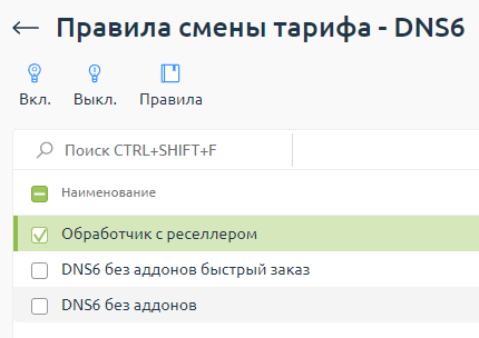 Вы можете настроить особые правила для каждого тарифа в разделе Правила смены тарифа. Чтобы перейти в раздел, откройте Продукты → Тарифные планы → выберите тариф → кнопка Смена тарифа.