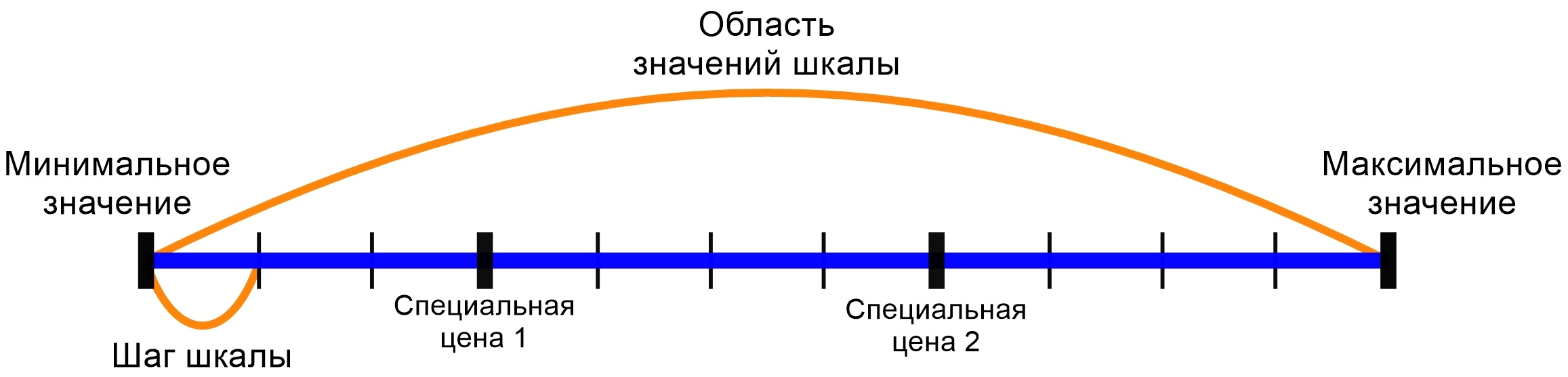 Особенность данного типа шкалы в том, что для выбора доступны только точки специальной цены. Заказать промежуточное значение невозможно.