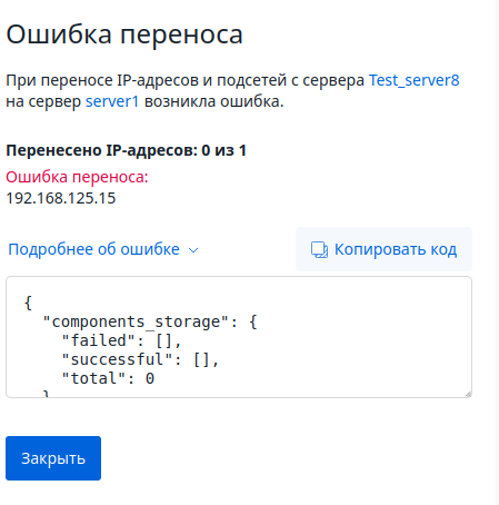 Если при переносе возникли ошибки, в интерфейсе появится всплывающее окно об ошибке. Чтобы увидеть логи операции, нажмите Подробнее во всплывающем окне.