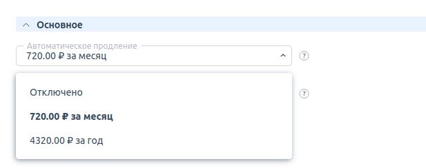 В поле Автоматическое продление установите период. Например, месяц или год.
