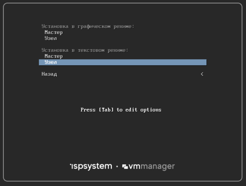 Скрипт установки ПО VMmanager запустится автоматически при первой загрузке мастера. Для установки ПО: