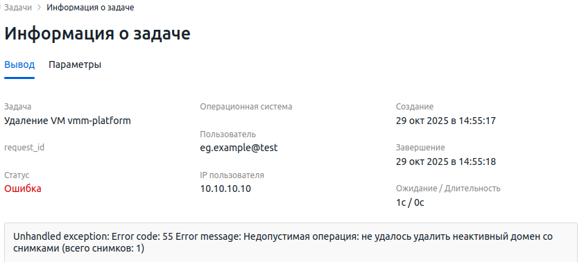 При попытке удалить виртуальную машину (ВМ) возникает ошибка: