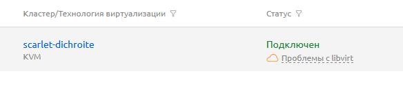 - Проверьте столбец Статус. Признак проблемы: отображается сообщение Проблемы с libvirt.