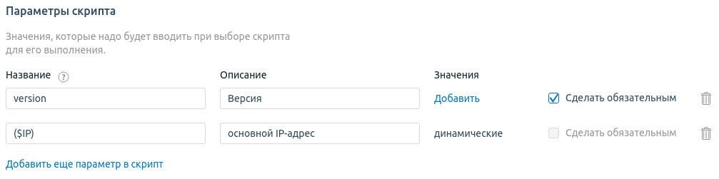 - Чтобы добавить в скрипт больше параметров, нажмите Добавить еще параметр в скрипт. Чтобы удалить параметр, нажмите значок