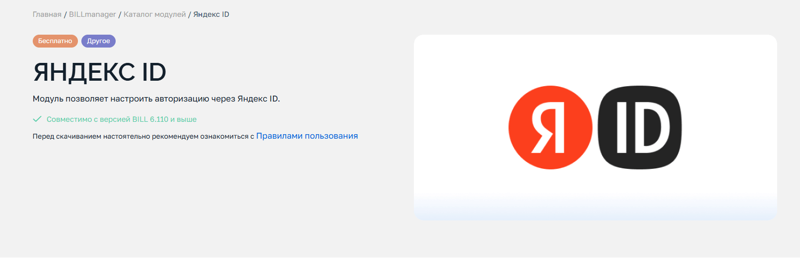 - Модуль авторизации через Яндекс ID. Приложение дает возможность настроить для клиентов авторизацию в панели управления с помощью аккаунта Яндекса, сделав процесс входа более быстрым и удобным.