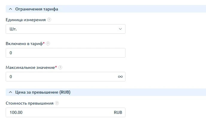- В разделе «Цена за превышение» указать стоимость дополнений при превышении. Готово!